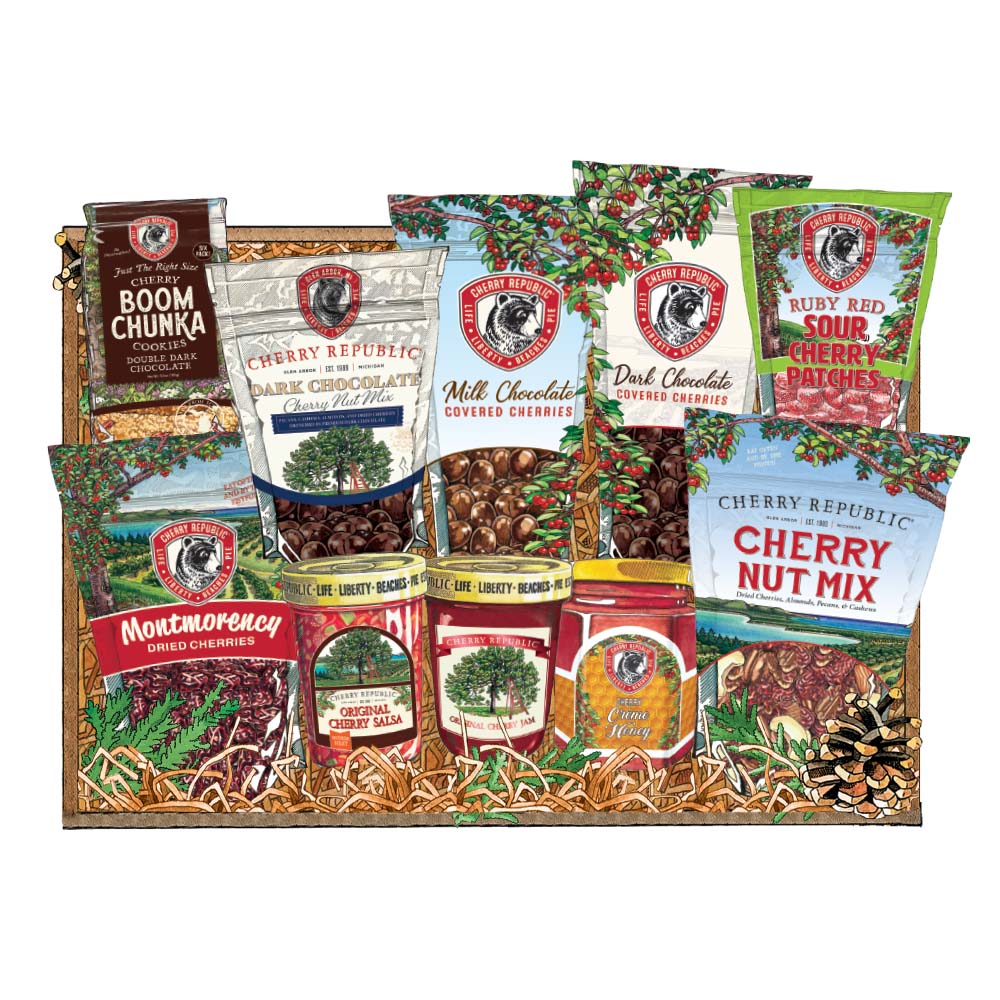 Share your love of cherries with friends and loved ones far and wide. Jam-packed with nearly a dozen of our most popular products, this generous gift is filled with goodness from the whole county!