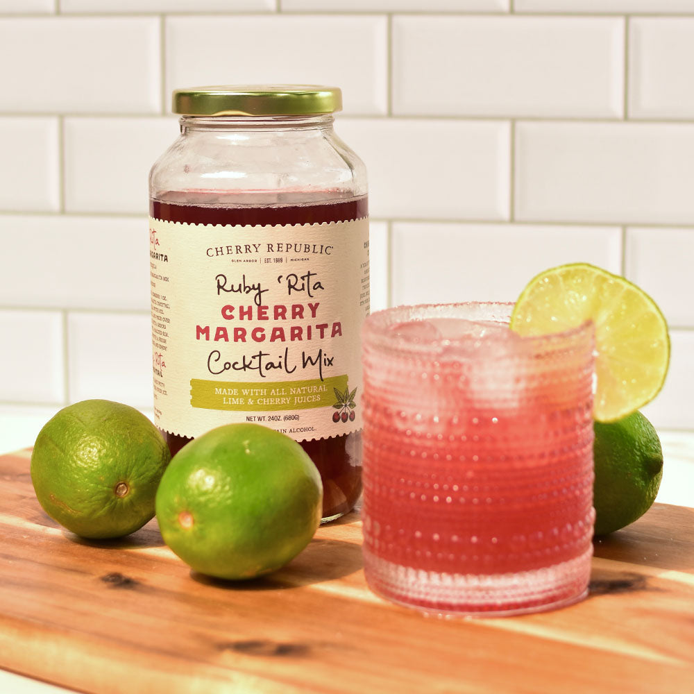 Up your margarita game with our Ruby 'Rita cocktail mix, with this juicy and delicious cherry lime mixer. Made with simple ingredients, for maximum flavor!
